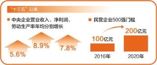 ¡¡¡¡¹úÆó¹æÄ£ÊµÁ¦Á¬ÐøÔöÇ¿£¬Ð§ÒæÎȲ½Ìá¸ß¡£Ô¤¼Æµ½½ñÄêµ×£¬ÖÐÑëÆóÒµ×ʲú×ܶ½Ó½ü69ÍòÒÚÔª£¬±È¡°Ê®¶þÎ塱ĩÔö³¤45%¡£¡°Ê®ÈýÎ塱ÒÔÀ´£¬ÖÐÑëÆóÒµÓªÒµÊÕÈë¡¢¾»ÀûÈó¡¢ÀͶ¯Éú²úÂÊÄê¾ù»®·ÖÔö³¤5.6%¡¢8.9%¡¢7.8%£¬½øÈëÊÀ½ç500Ç¿µÄÖÐÑëÆóÒµµÖ´ï48¼Ò¡£ÃñÆó¸ïÐÂÉú³¤Ð§¹ûÏÔÖø¡£¡°Ê®ÈýÎ塱ÒÔÀ´£¬ÃñÓªÆóÒµ500Ç¿Ãż÷´Ó2016ÄêµÄ100ÒÚÔªÌáÉýÖÁ2020ÄêµÄ200ÒÚÔª£»Á¢Òì´´Òµ´´Á¢ÈÈÇé¸ßÕÇ£¬ÖÐСÆóÒµÊýÁ¿Ôö³¤½ü1±¶¡£