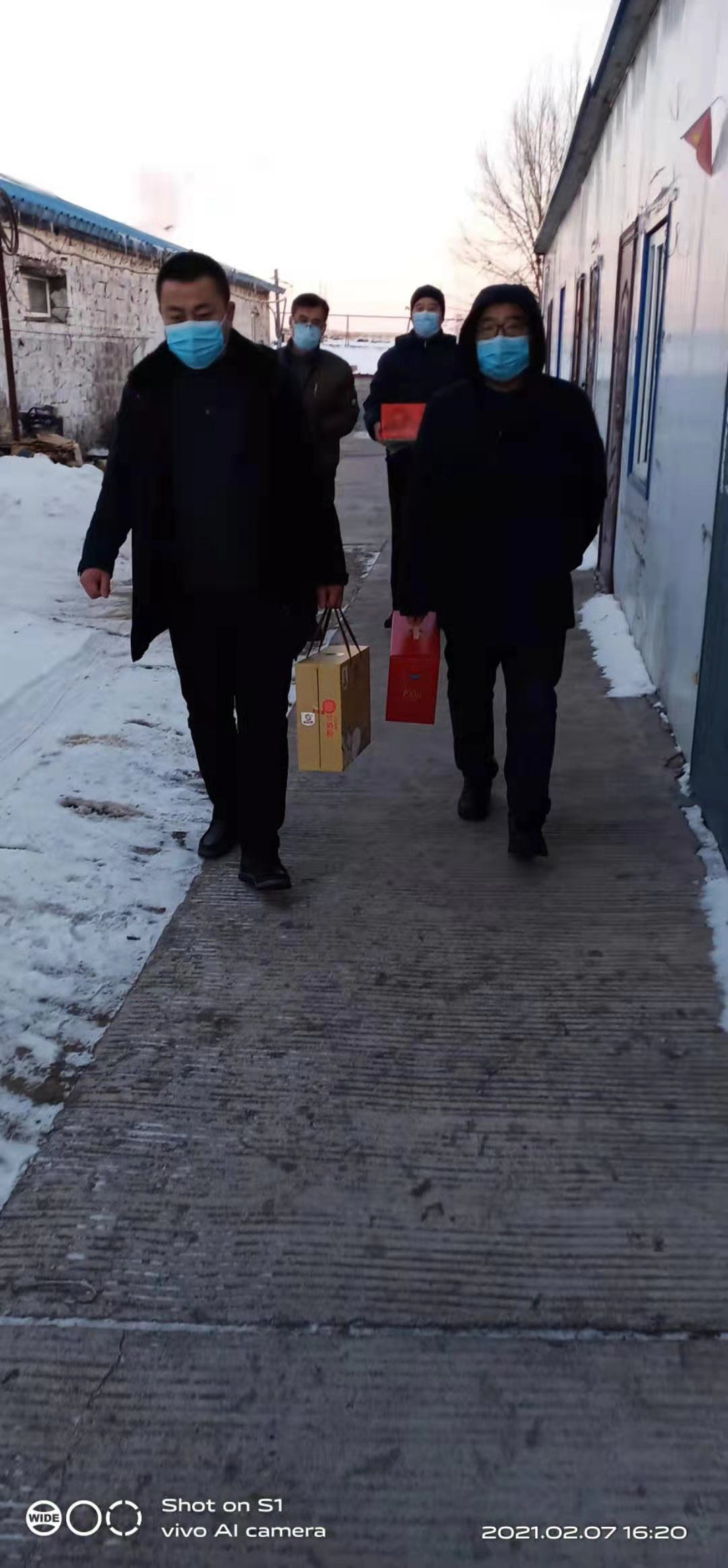 凭据矿建公司党委要求,2月7日这天,二十三工程处党政领导顶着砭骨的严寒,乘着满载富厚年货的“皮卡”车,来惠临时居住在鹤岗市及四周矿区内“就地过年”的部分职工家中走访慰问 。