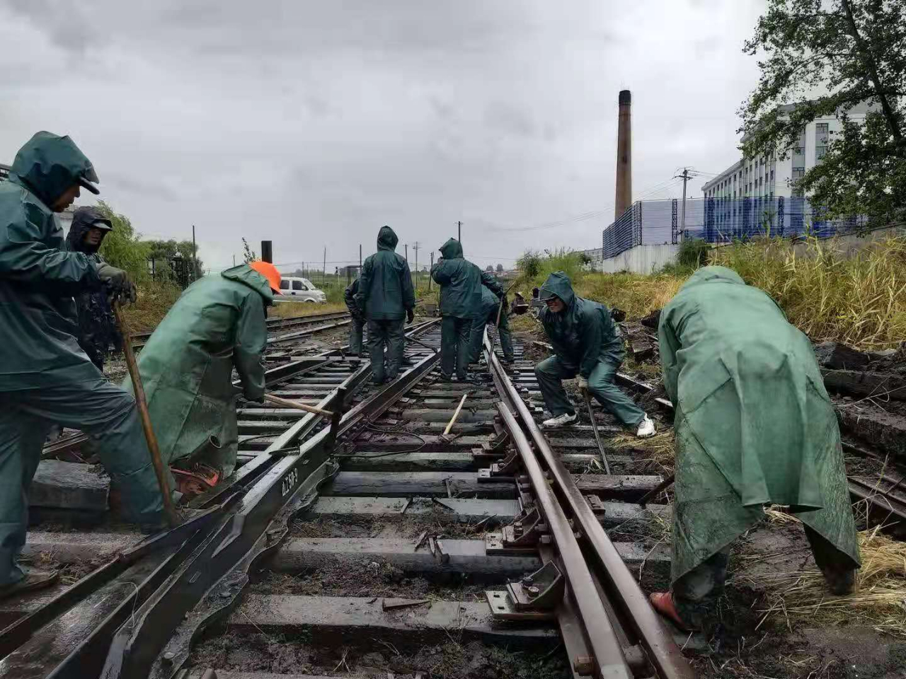 他们沿着线路分赴各自卖力的区段,先是一字排开更换2号道岔,拆除旧扣件、卸螺栓,用撬棍将旧轨与枕木疏散开,撤下原有铁轨与枕木后,又将准备好砼枕和50kg/m铁轨更换上。修复牵出线80米,在作业难度很是大的情况下清除杂草树木近500米,完成铺设木场线路478米。