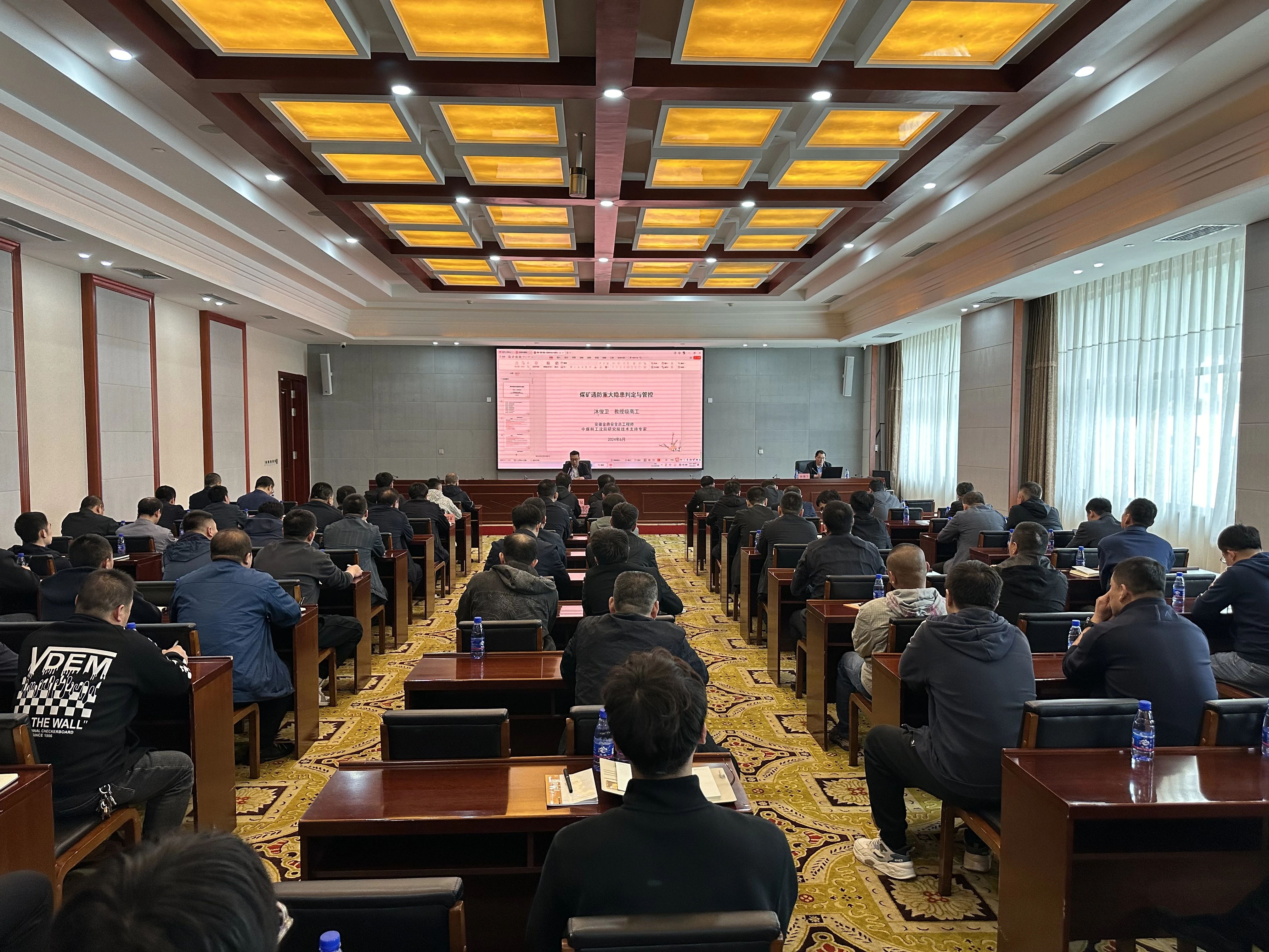 为进一步提高各级治理人员对《煤矿重大事故隐患判定标准》的理解和认识,推进重大隐患清零目标有序进行,贯彻落实2024年全国“宁静生产月”运动安排,做到“人人讲宁静、个个会应急——流通生命通道”,6月1日,公司举办《煤矿重大事故隐患判定标准》解读培训班,邀请安徽金鼎宁静股份公司总工程师、教授级高级工程师、中煤科工沈阳研究院技术支持专家沐俊卫作专题讲座。公司总工程师刘洪泉出席并主持培训班开班式。公司相关副总师,公司相关部室及单位卖力人,各矿总工程师、相关专业副矿长、副总工程师,周遭公司、机电设备装置公司有关人员等共计90多人聆听了讲座。